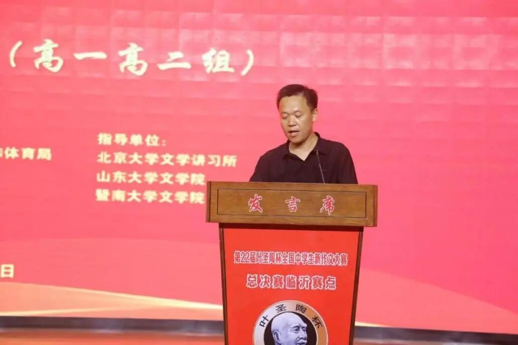 2025-07-18来源:“叶圣陶杯”全国中学生新作文大赛唯一官方网站七月沂蒙,翰墨飘香。2025年7月12日至13日,第22届叶圣陶杯全国中学生新作文大赛总决赛在书圣王羲之故里山东临沂设立的赛点顺利举办。山东大学文学院常务副院长、中国当代文学研究会校园文学委员会副理事长马兵,山东省作家协会原副主席、山东大学特聘教授、著名作家赵德发,临沂市教育局党组成员、副局长张国富,罗庄区委常委、副区长郭慎伟,罗庄区委教育工委常务副书记、区教体局党组书记、局长刘文峰,区教体局党委成员、临沂第十八中学党委副书记、副校长李志国等领导专家出席决赛开幕式,从不同角度对决赛选手进行鼓励与指导。